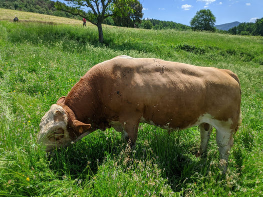 La raza Fleckvieh se caracteriza por ser una vaca que se adapta a todo tipo de terrenos y alimentación, principalmente pasto de campos, prados y sotobosque.